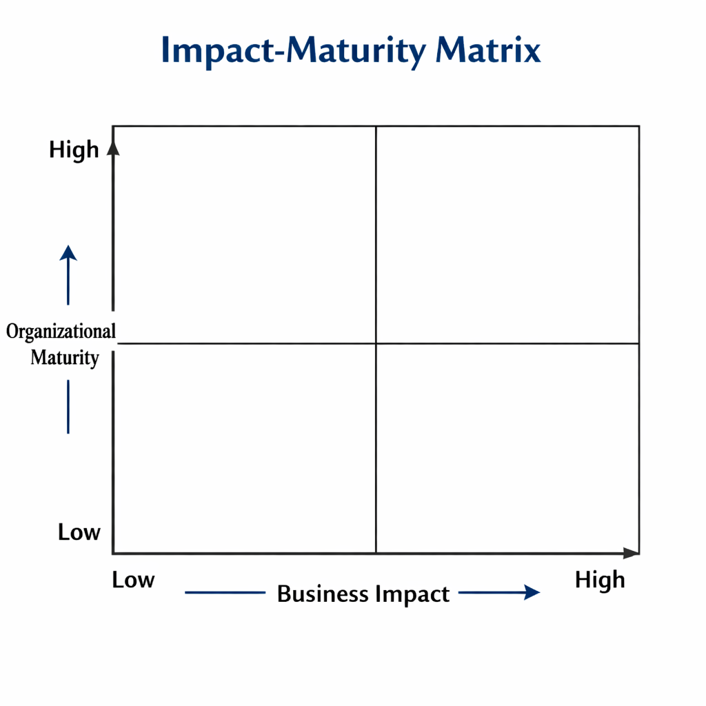 This is where the Impact-Maturity Matrix becomes a powerful decision-making lens. It helps leadership teams step back from hype and evaluate AI initiatives based on two realities that matter most in U.S. enterprises: business value and execution readiness. Instead of asking “Is this cutting-edge?”, the matrix forces a more grounded question: Will this deliver results at our current level of data maturity, talent, and operating model?